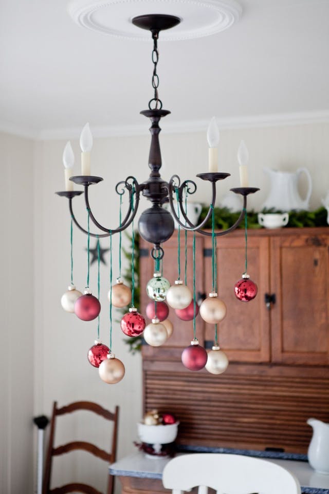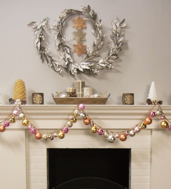 Πάρτε ένα κομμάτι σπάγκου και περάστε από μέσα τα στολίδια που θέλετε- για ένα πιο ευφάνταστο αποτέλεσμα, ανακατέψτε χρώματα, σχήματα και σχέδια. Μετά, απλώς κρεμάστε τον σπάγκο και από τις δύο μεριές σαν να ήταν γιρλάντα. Αν έχετε τζάκι, αυτή η διακοσμητική πινελιά του ταιριάζει απόλυτα.