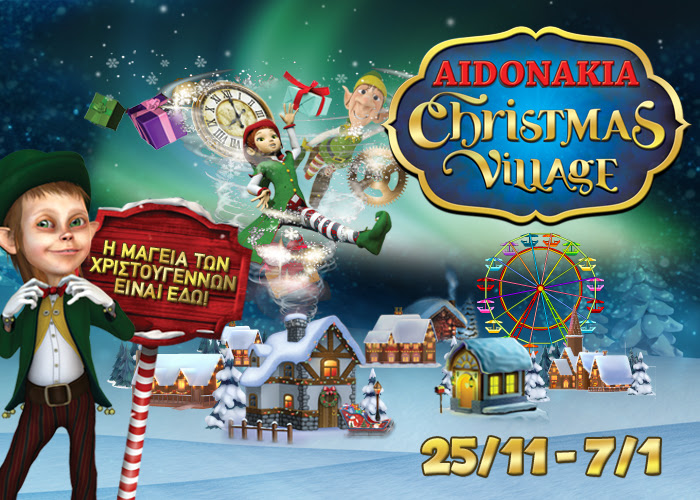 Στο Aidonakia Christmas Village φέτος θα τα βρείτε όλα. Ένας παραμυθένιος κόσμος περιμένει μικρούς και μεγάλους με πολλά παιχνίδια και χριστουγεννιάτικες εκπλήξεις, όπως: πανοραμική ρόδα, συγκρουόμενα αυτοκίνητα, roller coaster, ολοκαίνουργια πίστα πατινάζ «Ice Rollers», 3D mapping προβολές, σκανδαλιάρικα ξωτικά, χριστουγεννιάτικα εργαστήρια, face painting και πολλές-πολλές ακόμη πρωτότυπες δράσεις.