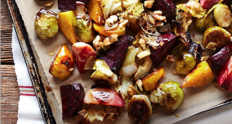 Κόψτε τα λαχανικά σε φέτες, προσθέστε αλάτι και ρίγανη, βάλτε τα στο ταψί, στο οποίο θα έχετε στρώσει ένα φύλλο λαδόκολλας, περιχύστε με μία κουταλιά ελαιόλαδο και ψήστε σε μέτρια θερμοκρασία στον φούρνο.