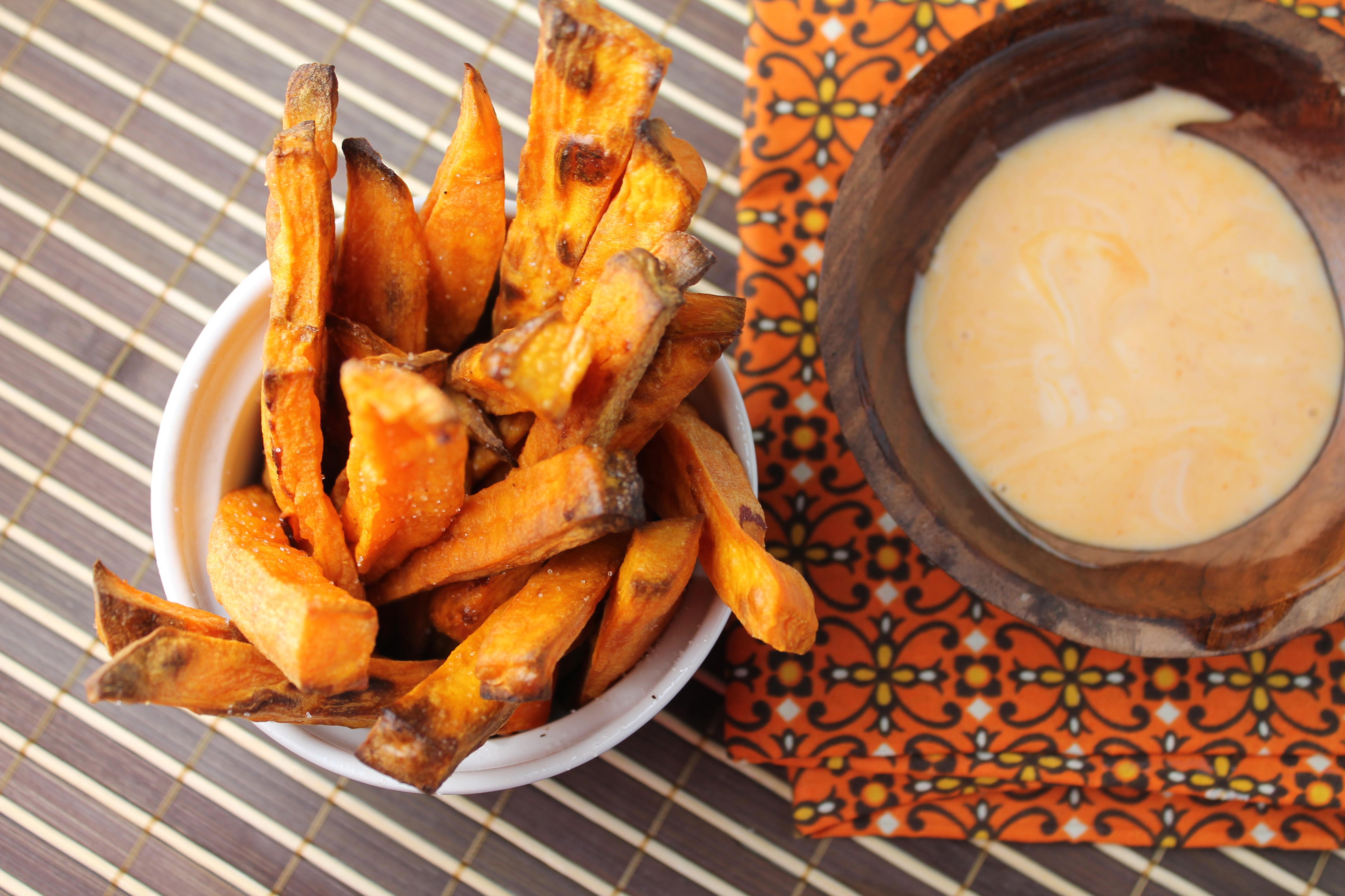 Τσιπς γλυκοπατάτας με σως γιαουρτιού