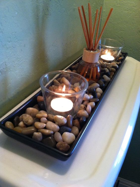 Πετρούλες και κεριά πάνω σ' έναν δίσκο θα κάνουν το μπάνιο σας να μοιάζει με σπα