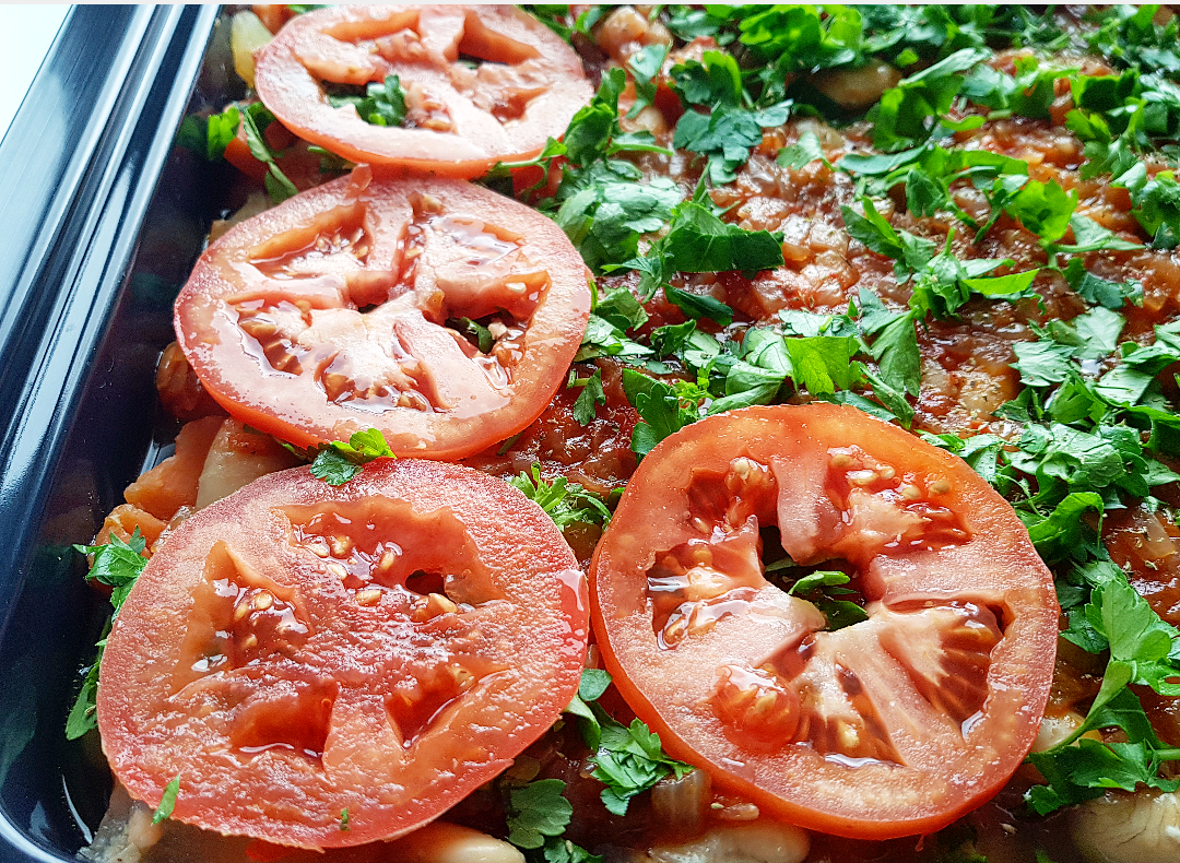 Ρίχνετε λίγο φρεσκοτριμμένο πιπέρι και αλάτι από πάνω και ψήνετε στον φούρνο στους 180 βαθμούς μέχρι να πάρει χρώμα η ντομάτα και να παραμείνει ζουμερό το φαΐ χωρίς να στεγνώσει -45 λεπτά το πολύ!