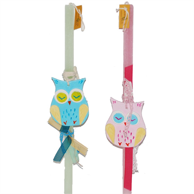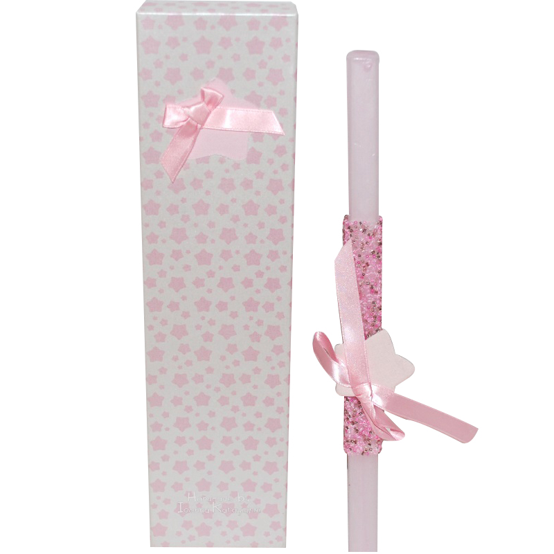 Χειροποίητη πασχαλινή λαμπάδα διακοσμημένη με ένα αστέρι και χάντρες.