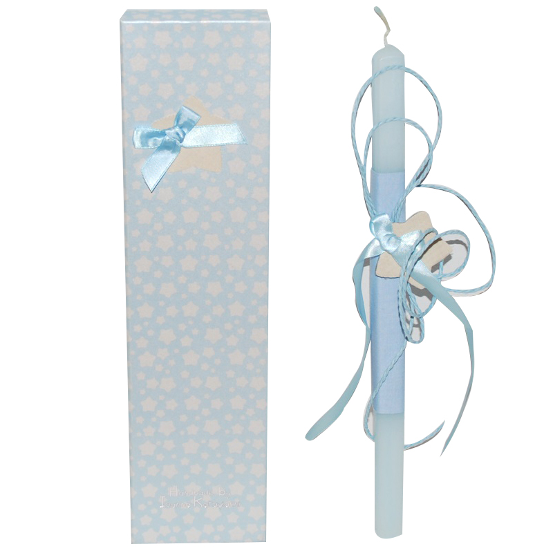 Χειροποίητη πασχαλινή λαμπάδα διακοσμημένη με ένα υφασμάτινο αστέρι, ιδανική για αγόρια.