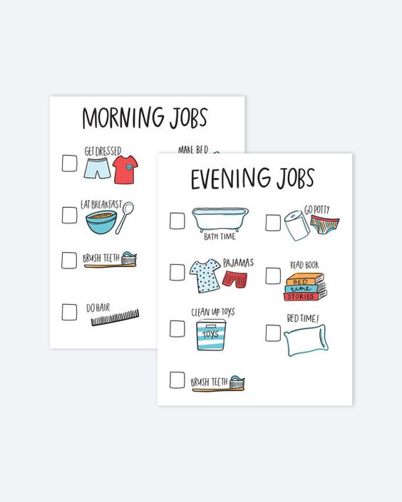 Για να γίνει η συνήθεια της «πρωινής αυτονομίας» πιο διασκεδαστική αλλά και πιο αποτελεσματική, μπορείτε να φτιάξετε και να κολλήσετε στο δωμάτιο του παιδιού μια… χειροποίητη λίστα αρμοδιοτήτων.