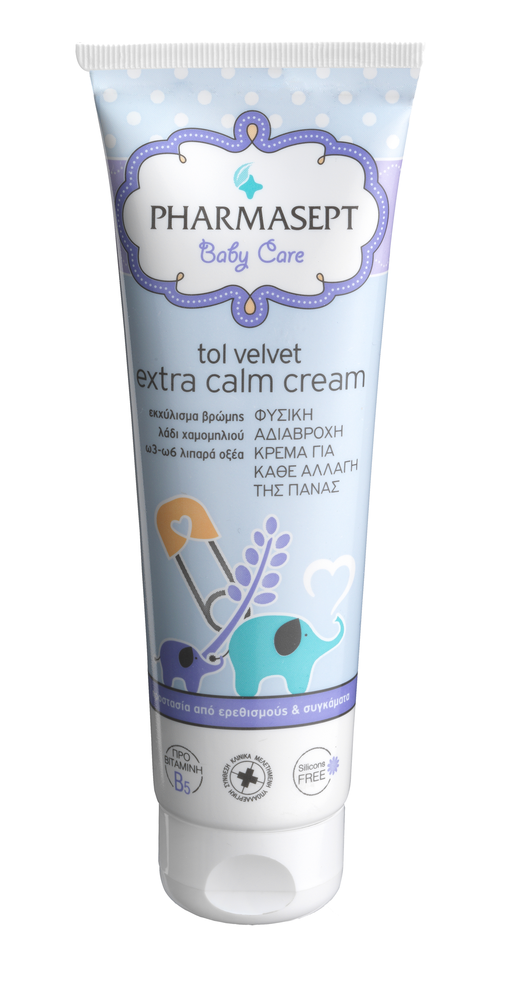 Η Baby Extra Calm Cream 150ml της Pharmasept είναι μια φυσική προστατευτική κρέμα για κάθε αλλαγή της πάνας με απαλή υποαλλεργική σύνθεση σχεδιασμένη για το ευαίσθητο δέρμα του μωρού με 5% οξείδιο του ψευδαργύρου που δημιουργεί ένα φιλμ προστασίας στην επιδερμίδα και την προφυλάσσει από τη διαβροχή και τους ερεθισμούς. Εμπλουτισμένη με φυτικά εκχυλίσματα (βρώμη, χαμομήλι) που ανακουφίζουν και θρέφουν το δέρμα.
