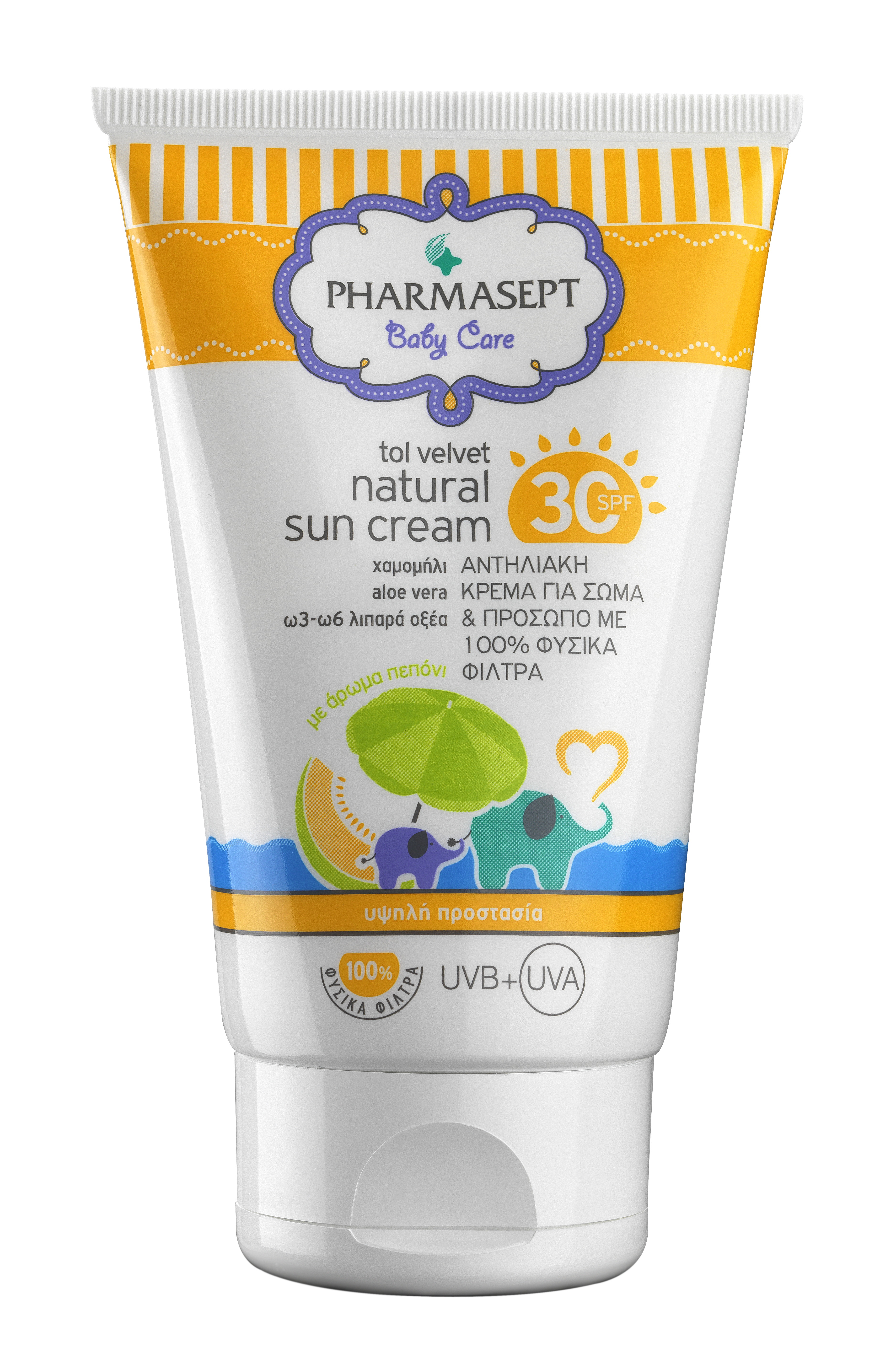 Η απαλή αντηλιακή κρέμα προσώπου και σώματος, με 100% φυσικά φίλτρα, Baby Natural Sun Cream SPF30 100ml, με φυσική και υποαλλεργική σύνθεση, ενυδατώνει και καταπραΰνει από κοκκινίλες και ερεθισμούς το σώμα και το πρόσωπο του μωρού, χάρη στα φυτικά εκχυλίσματα (aloe vera, χαμομήλι) που περιέχει. Κατάλληλη από την πρώτη μέρα που θα υποδείξει ο παιδίατρος την έκθεση του μωρού στον ήλιο.