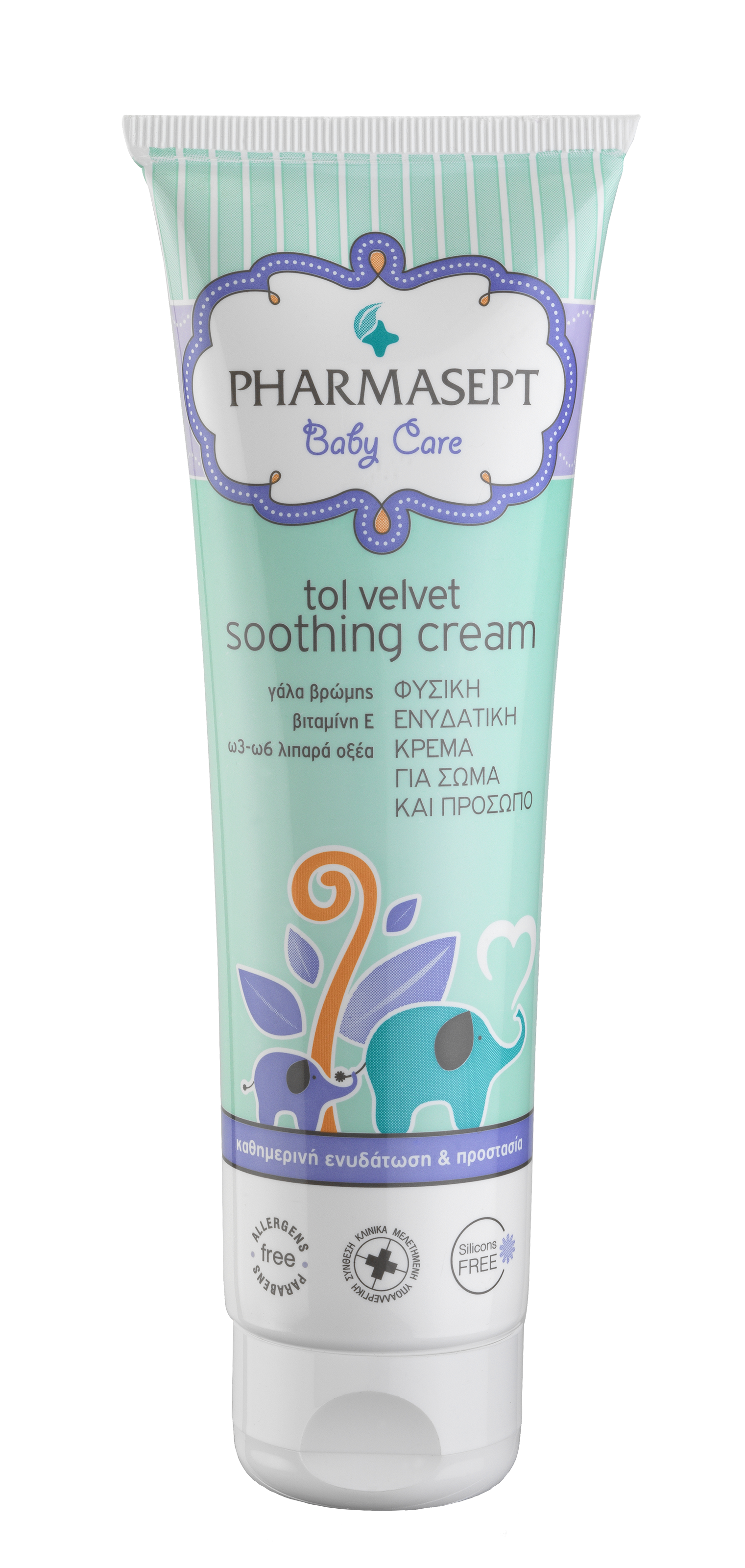 Η Baby Soothing Cream 150ml της Pharmasept είναι μια απαλή ενυδατική κρέμα με 100% φυσική σύνθεση, που ενυδατώνει και καταπραΰνει από κοκκινίλες και ερεθισμούς στο σώμα και το πρόσωπο του μωρού, χάρη στα φυσικά λιπαρά οξέα Ω3-Ω6, το έλαιο καλέντουλας, το γάλα βρώμης και τη βιζαβολόλη που περιέχει. Σύνθεση χωρίς σιλικόνη.
