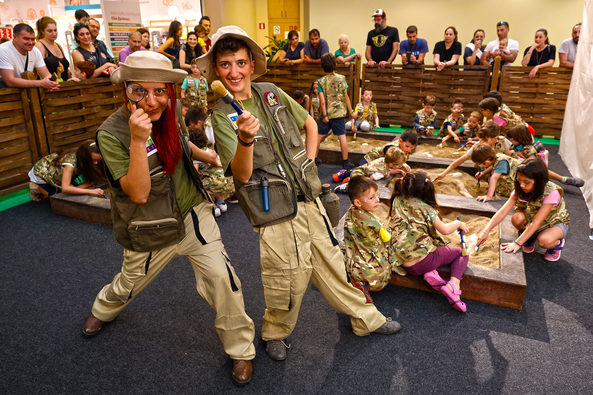 Καθημερινά από τις 17.00 ως τις 21.00, τα Σάββατα 12.00 με 20.00 και την Κυριακή 6 Μαΐου 11.00 με 19.00 τα παιδιά εξερευνούν, ανακαλύπτουν, διασκεδάζουν και μαθαίνουν για τον συναρπαστικό κόσμο των δεινόσαυρων μέσα από ένα κυνήγι απολιθωμάτων και μια εξερευνητική αποστολή στη προϊστορική ζωή.