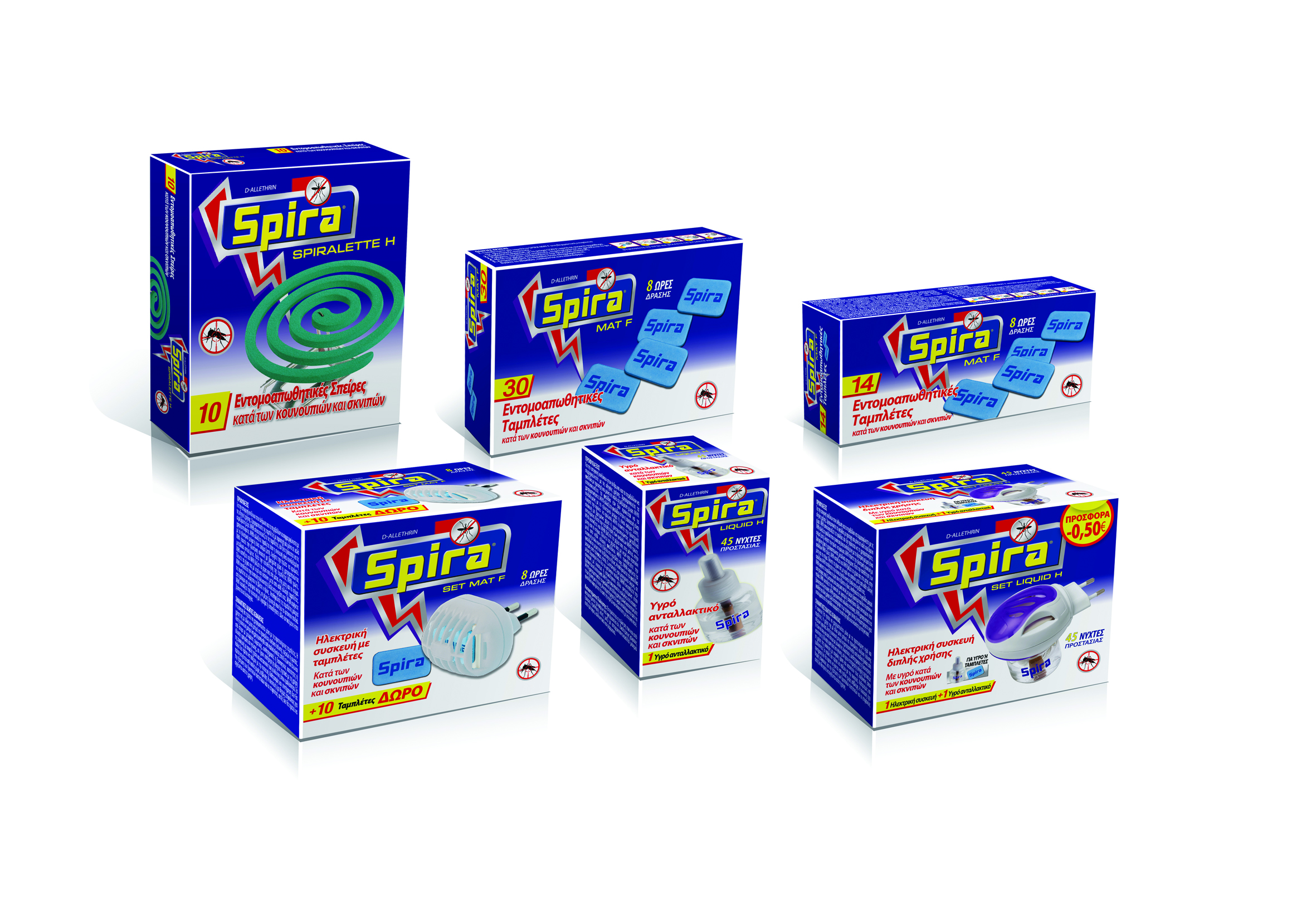 Τα εντομοαπωθητικά προϊόντα (σπείρες, ταμπλέτες και υγρά) Spira που παράγονται στην Ιταλία, από το Group εταιρειών Zobele, κατέχοντας παγκοσμίως ηγετική θέση στην παραγωγή εντομοαπωθητικών προϊόντων, επιστρέφουν φέτος ανανεωμένα σε νέα ελκυστική συσκευασία και με νέες μοντέρνες συσκευές. Θα τα βρείτε σε super και mini markets.