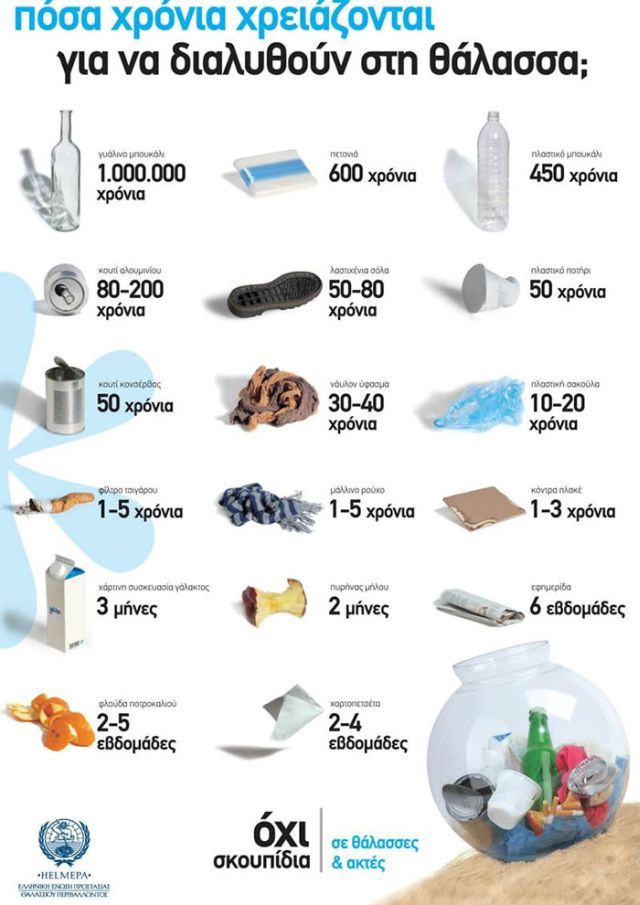Οι θεωρίες και τα κηρύγματα για το πόσο σημαντικό είναι να σεβόμαστε το περιβάλλον στο οποίο ζούμε είναι καλές, αλλά δεν είναι δελεαστικές για ένα μικρό παιδί που θα τις βαρεθεί μέσα σε λίγα δευτερόλεπτα. Αν θέλετε να του κεντρίσετε πραγματικά το ενδιαφέρον, δώστε του να καταλάβει αυτό που θέλετε χρησιμοποιώντας στοιχεία και αριθμούς. Ένα πλαστικό ποτήρι για παράδειγμα, χρειάζεται 50 χρόνια για να διαλυθεί ενώ ένα πλαστικό μπουκάλι αποσυντίθεται σε 450 χρόνια. Με λίγα λόγια, αν το πετάξουμε στα σκουπίδια σήμερα, εν έτει 2018, θα διαλυθεί το 2468! Και στις 2 περιπτώσεις, φυσικά, δεν μιλάμε για ανακύκλωση αλλά καθαρά για μόλυνση του περιβάλλοντος.