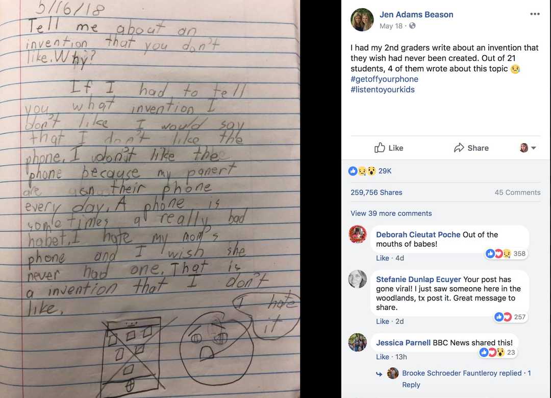Η δασκάλα μοιράστηκε με τους διαδικτυακούς της φίλους την έκθεση του μαθητή της. Όπως ήταν αναμενόμενο, το post της προσέλκυσε πολλούς χρήστες του Facebook με αποτέλεσμα να κοινοποιηθεί 261.000 φορές ακόμα.