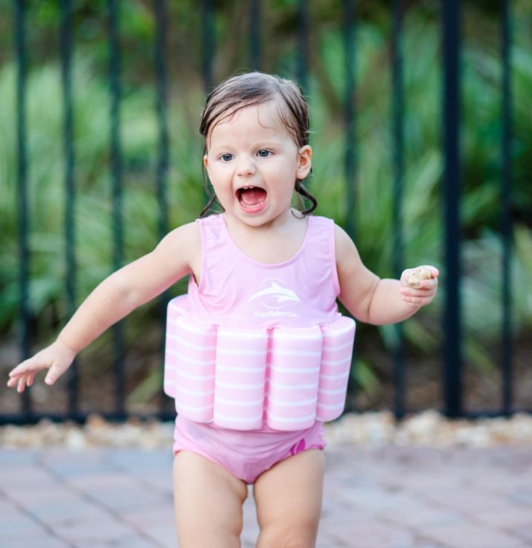 Το ατού του είναι ότι βοηθά τα παιδιά να επιπλεύσουν με τα 8 αφαιρούμενα σωσίβια που έχει στη μέση, δίνοντάς τους ελευθερία κινήσεων στα χέρια. Δεν τα περιορίζει όπως τα μπρατσάκια ούτε θυμίζει το κλασικό σωσίβιο- γιλέκο που είναι λίγο... άχαρο.