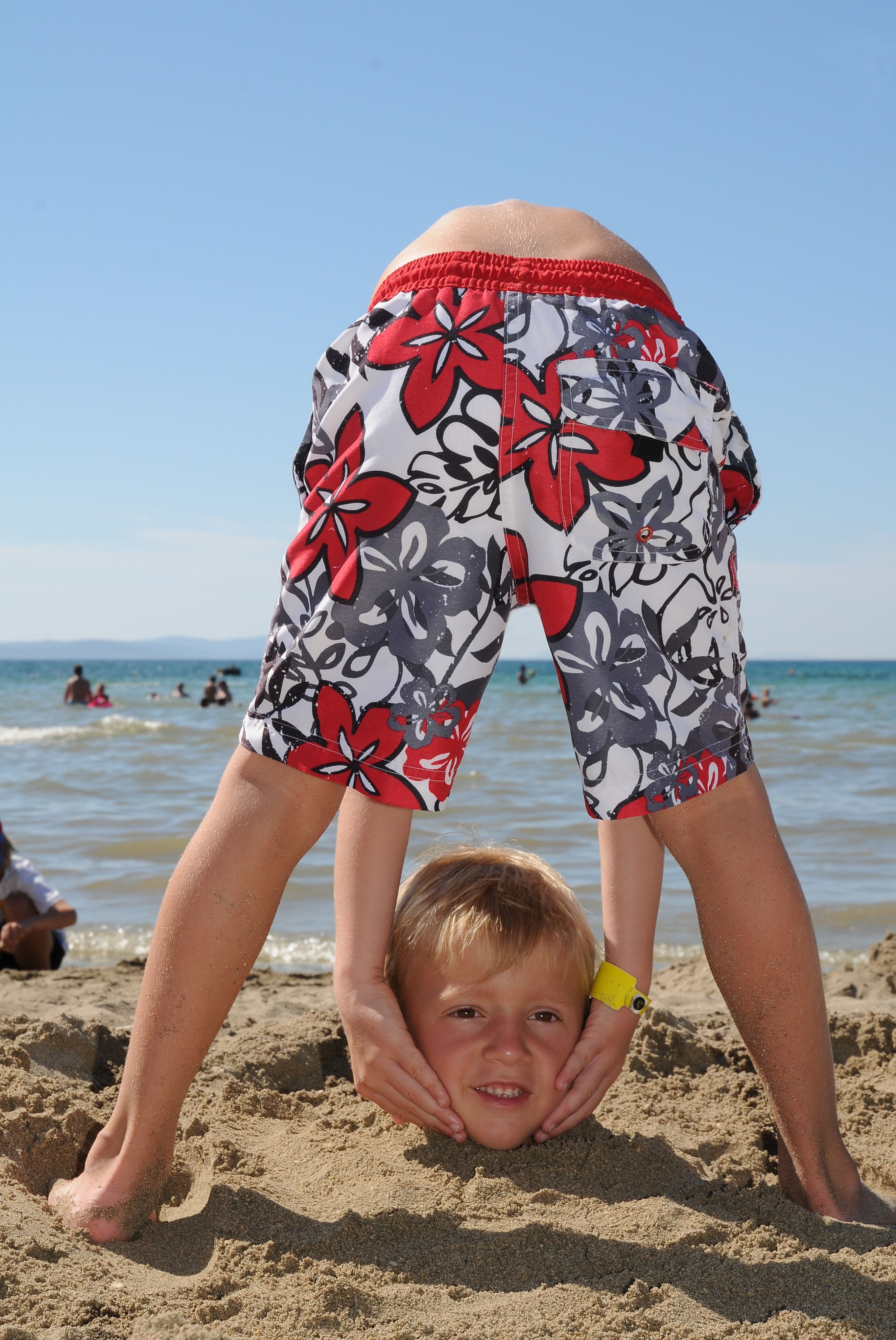 Ή αυτή! Μην τρομάζετε- το ένα παιδάκι είναι θαμμένο στην άμμο μέχρι τον λαιμό και το άλλο κρύβει το κεφάλι του.