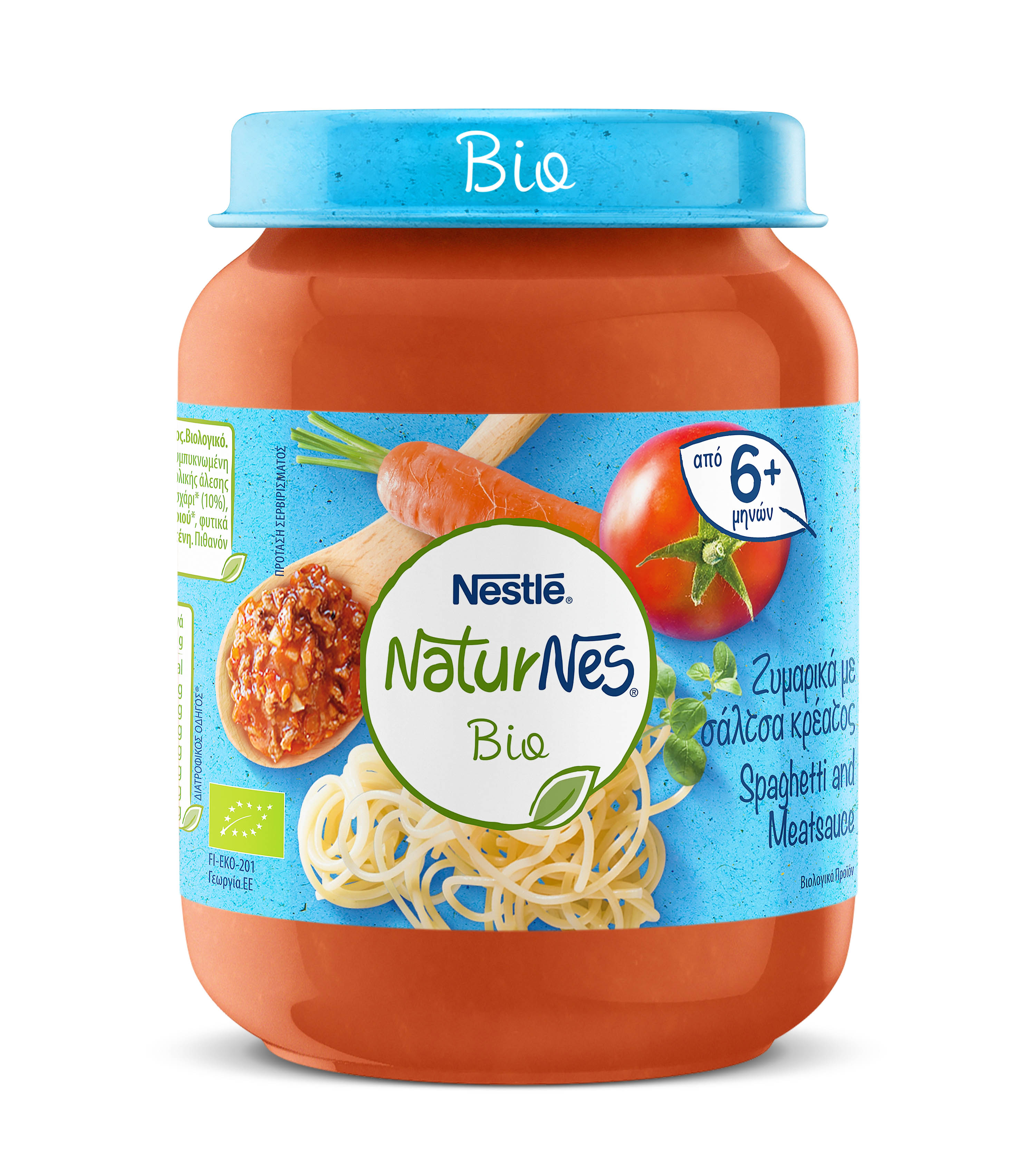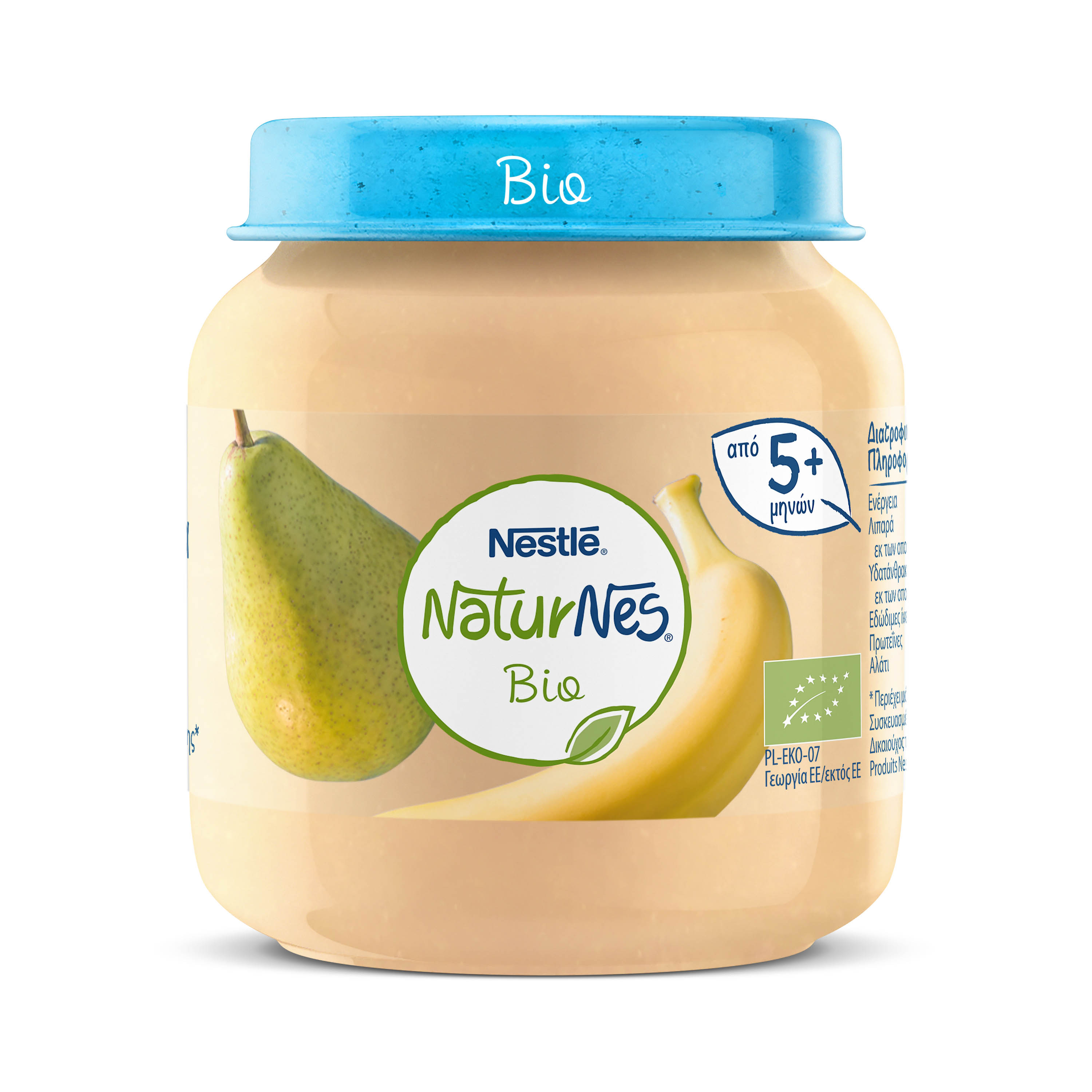 Τα έτοιμα βιολογικά βρεφικά γεύματα NaturNes Bio, κατάλληλα από τον 5ο μήνα, προέρχονται από 100% βιολογικά φρούτα και 100% βιολογικά λαχανικά, ειδικά επιλεγμένα για βρέφη, μαγειρεμένα στον ατμό, διατηρώντας, έτσι, όλα τα θρεπτικά συστατικά τους. Μέσα σε κενό αέρος και με τον πιο ασφαλή τρόπο, η Nestlé έχει «κλείσει» τα καλύτερα βιολογικά φρούτα (μήλα, ροδάκινα βερίκοκα, μπανάνες, αχλάδια), και έχει δημιουργήσει θρεπτικά γεύματα χωρίς καμία προσθήκη ζάχαρης ή συντηρητικά, όπως άλλωστε ορίζει και η νομοθεσία, διατηρώντας αναλλοίωτες τις θρεπτικές ιδιότητές τους.