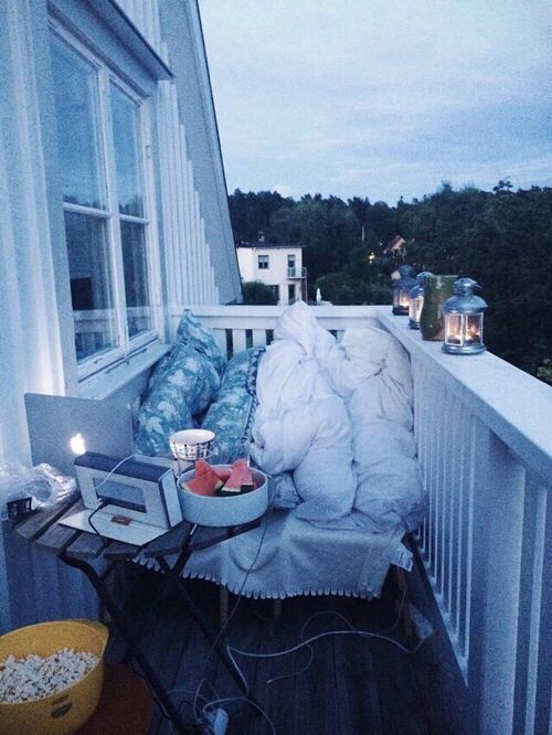 Η διαδικασία είναι πολύ απλή: μεταφέρετε την τηλεόραση ή το λάπτοπ, αν έχει μεγάλη οθόνη, στο μπαλκόνι και τοποθετήστε τα σε ένα τραπέζι στο κατάλληλο ύψος. Για να μην πιαστείτε στις καρέκλες, σας προτείνουμε να απλώσετε στο πάτωμα μαξιλάρες ή ένα πρόχειρο στρωματάκι για να δείτε την αγαπημένη σας ταινία ή σειρά ξαπλωμένοι και... στρωματσάδα. Αν έχετε όρεξη και χρόνο φυσικά, διακοσμήστε το μπαλκόνι με φωτάκια (ακόμα και τα χριστουγεννιάτικα αρκούν) ή φαναράκια για να κάνετε το σκηνικό πιο ρομαντικό και το μπαλκόνι σας να θυμίζει περισσότερο θερινό σινεμά.
