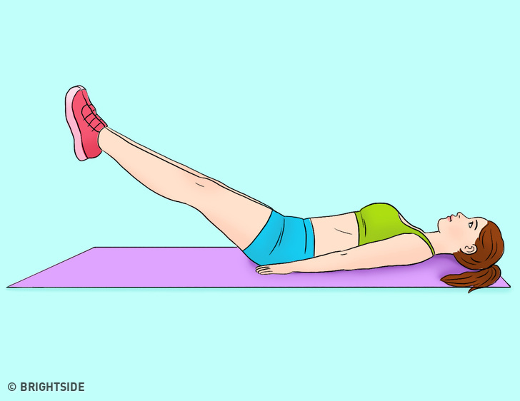 Πώς να τις κάνετε: ξαπλώστε με τα χέρια τεντωμένα στο πλάι. Σηκώστε και τα 2 πόδια περίπου 30 εκατοστά από το πάτωμα. Αν δυσκολεύεστε, ξεκινήστε σηκώνοντας το κάθε πόδι εναλλάξ.