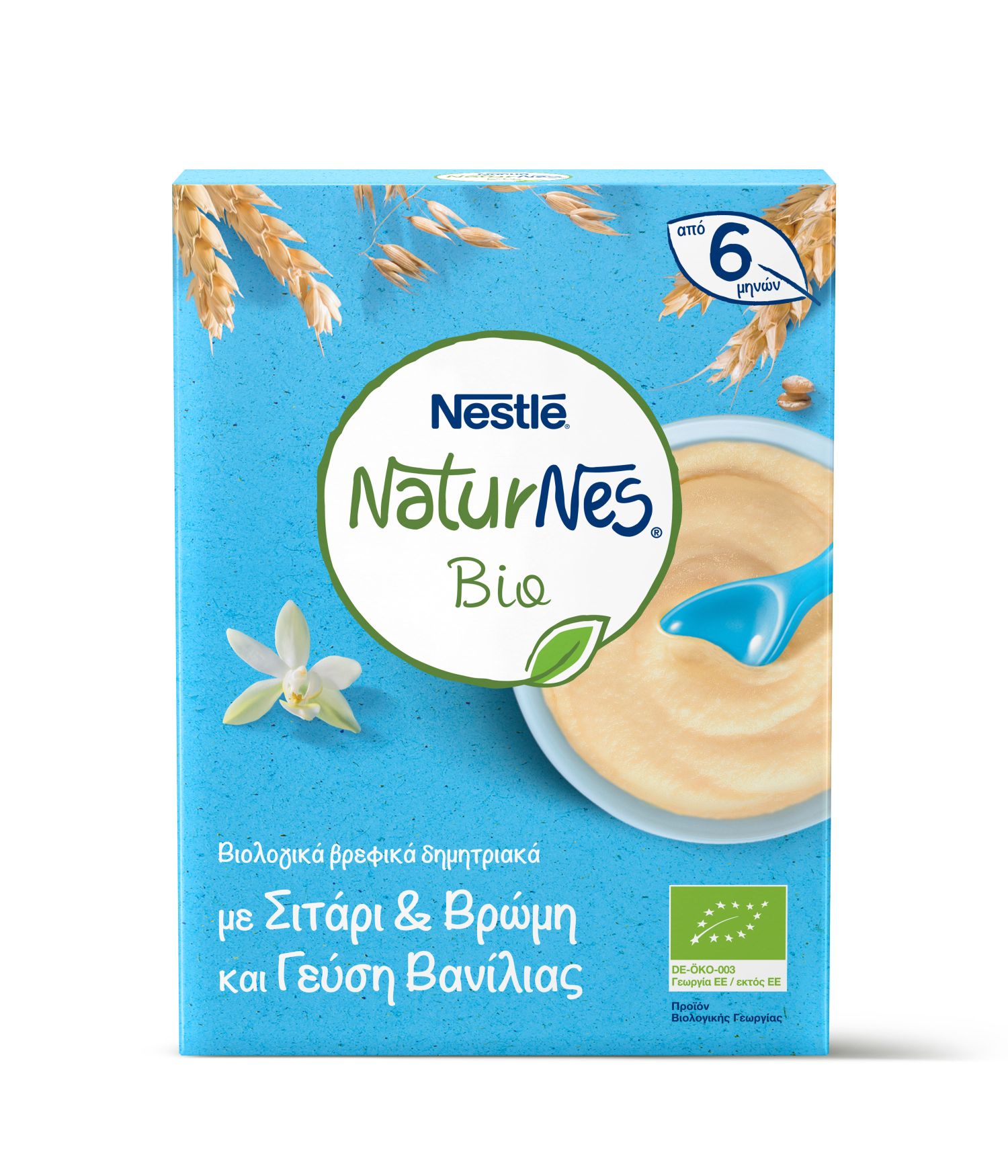 Η Nestlé μας δίνει την λύση: Τη νέα σειρά βιολογικών βρεφικών γευμάτων και δημητριακών Nestlé NaturNes Bio από 100% βιολογικά φρούτα, λαχανικά και δημητριακά και με υπέροχη γεύση, έτοιμα να τα απολαύσουν οι μικροί μας φίλοι. Δεν υπάρχει τίποτα πιο φυσικό, από την φροντίδα που μια μητέρα προσφέρει στο παιδί της. Γι’ αυτό και η νέα σειρά βιολογικών βρεφικών γευμάτων σε βαζάκια και βιολογικών βρεφικών δημητριακών, κλείνει μέσα της όλη την αγνότητα και την απλότητα της φύσης, αφού όλα τα  φρούτα, λαχανικά, δημητριακά και κρεατικά είναι 100% βιολογικά και προέρχονται από επιλεγμένες καλλιέργειες, ενώ, ταυτόχρονα, δίνει στις μαμάδες τη δυνατότητα να πειραματιστούν και να δημιουργήσουν τους δικούς τους γευστικούς συνδυασμούς, πάντα με την εγγύηση της Nestlé.