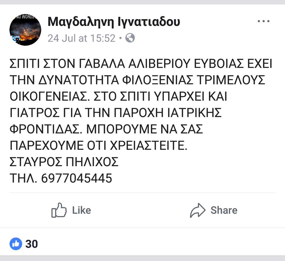 Οι άνθρωποι που θέλουν να προσφέρουν τα σπίτια τους στις πυρόπληκτες οικογένειες.