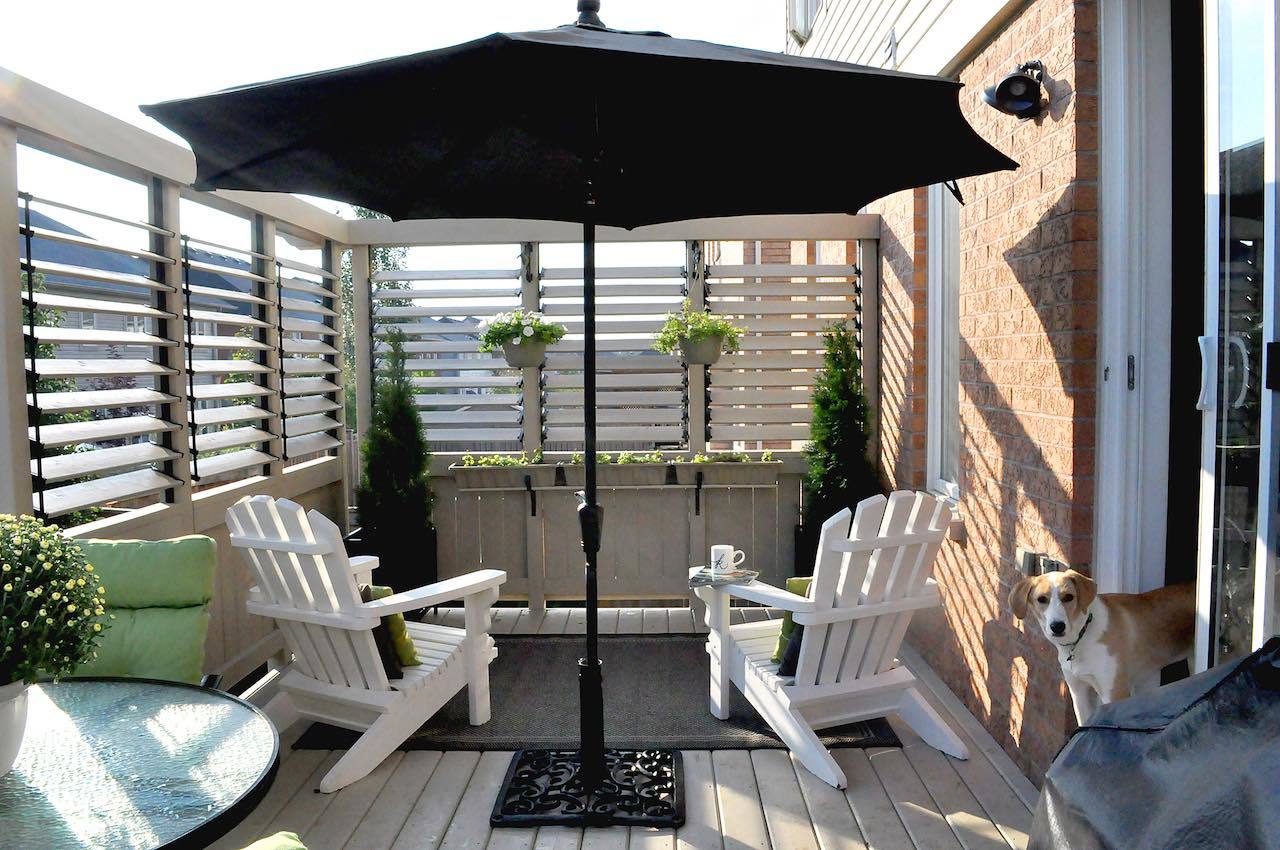 Μπορείτε να χρησιμοποιήσετε τελάρα ξύλου με οριζόντιες τάβλες πάνω στα κάγκελα. Είναι απαραίτητο να τις βιδώσετε έτσι ώστε να είναι σταθερές και αμέσως, έχετε έναν χώρο καλά προστατευμένο και μοντέρνο.
