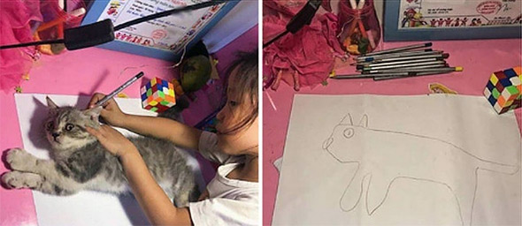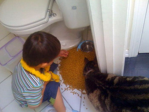 «Μαμά, έβαλα λίγο φαγητό στη γάτα»