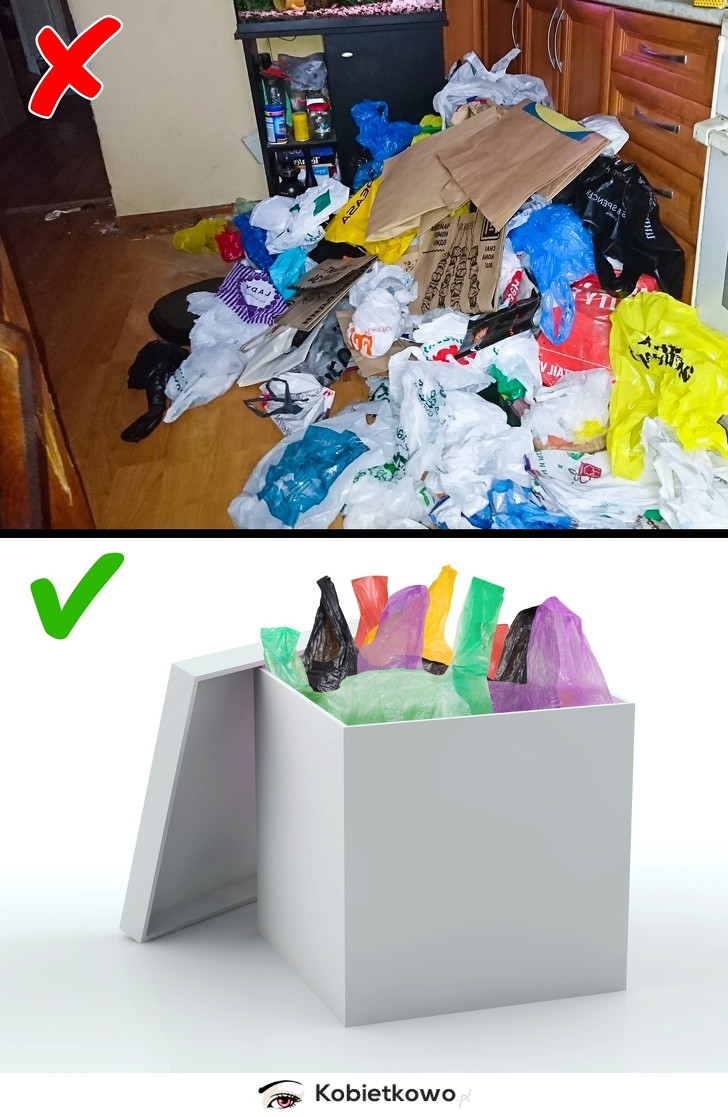 Πλέον δεν κάνουμε συλλογή από πλαστικές σακούλες, όμως και πάλι μαζεύουμε αρκετές και συνήθως τις πετάμε μέσα σε μια πιο μεγάλη πλαστική σακούλα που καταλήγει σε μια γωνία της κουζίνας. Το θέαμα αυτό, όμως, δεν… κολακεύει ιδιαίτερα την εικόνα του σπιτιού. Προτιμήστε να τις συγκεντρώσετε όλες σε μια ειδική θήκη για πλαστικές σακούλες ή ακόμα καλύτερα σε ένα κουτί για να κρύβονται εντελώς.