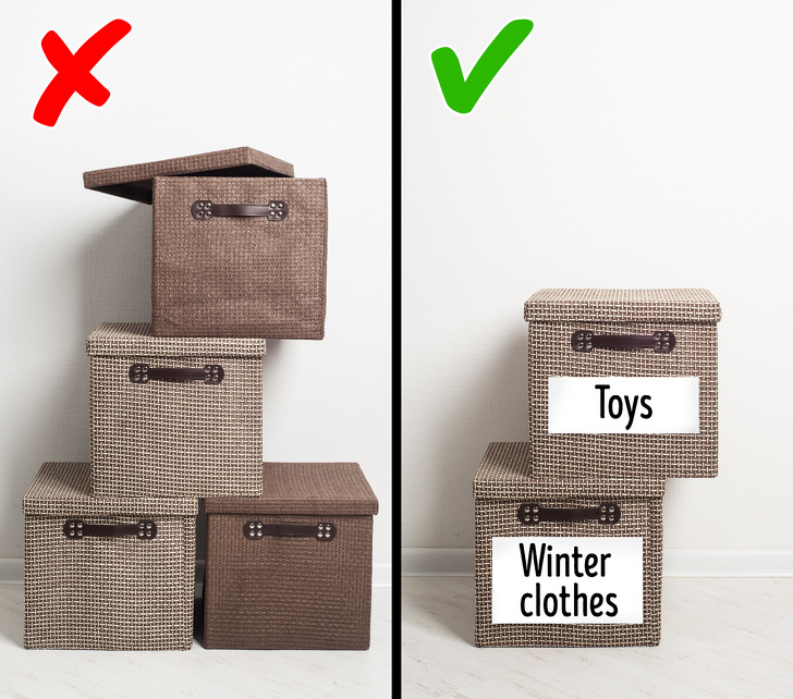Τα κουτιά είναι η εύκολη λύση για να οργανώσεις τα πράγματά σου, όμως, όταν μαζεύονται στοίβες από πολλά μικρά σε μέγεθος κουτιά, ο χώρος δείχνει ακατάστατος και «γεμάτος». Αποφύγετε αυτό το λάθος αντικαθιστώντας τα με λιγότερα και μεγαλύτερα κουτιά.