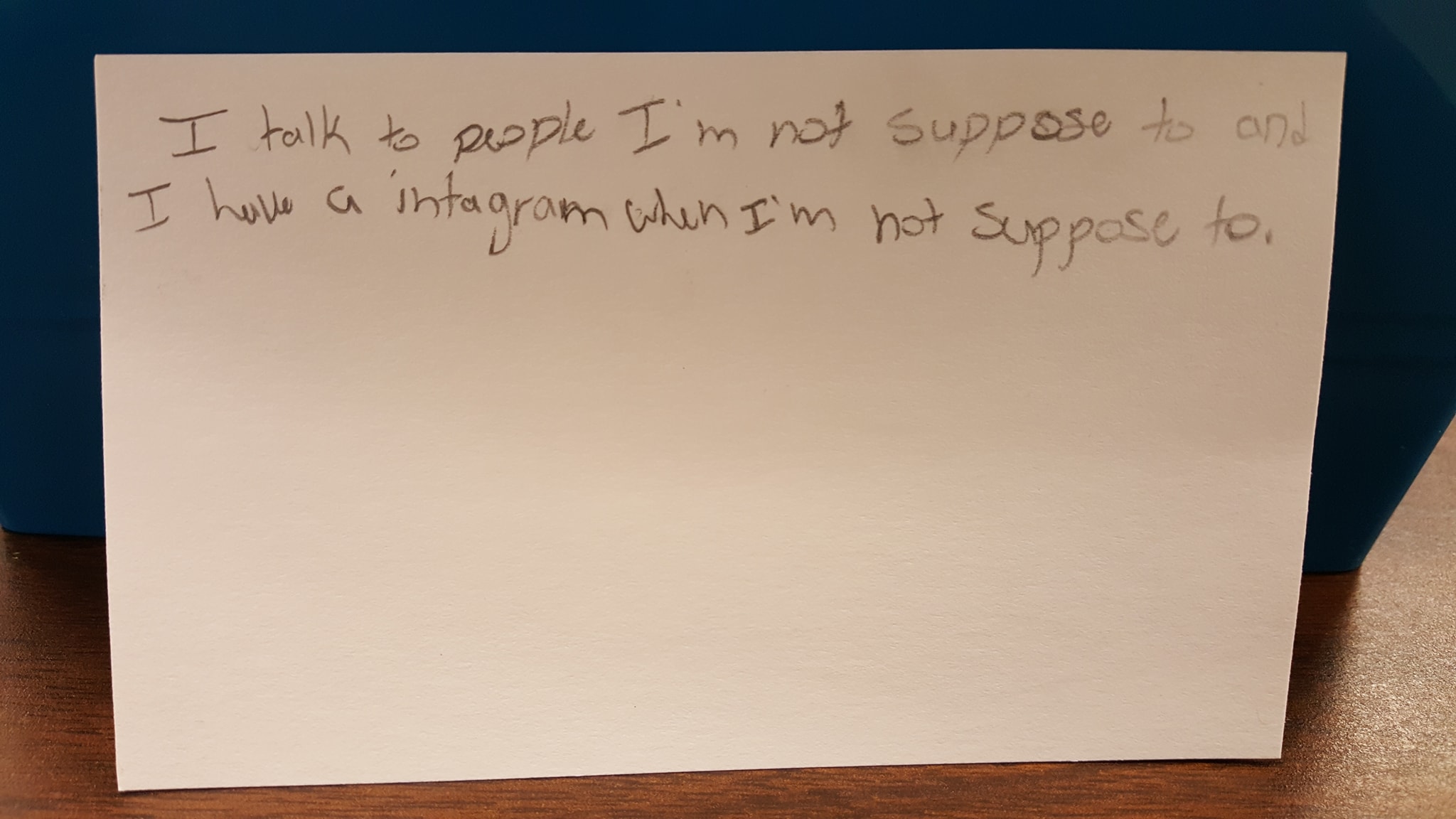«Αυτό που δεν ξέρουν οι γονείς μου για τα social media, είναι ότι μιλάω με ανθρώπους με τους οποίους δεν θα έπρεπε κανονικά να μιλάω αλλά και ότι έχω προφίλ στο instagram, που δεν θα έπρεπε κανονικά να έχω».