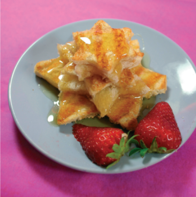 Κόβετε το ψωμί του τοστ με κουπάτ (λουλουδάκια, δεντράκια, πεταλούδες ή ό,τι άλλο έχετε) και τα ψήνετε στο φούρνο για περίπου δέκα λεπτά πάνω - κάτω. Βάζετεε σε ένα πιάτο τα ψωμάκια και τα περιχύνετε με μέλι. Για γαρνιτούρα προσθέτετε φράουλες ή όποιο άλλο φρούτο έχουτε στο ψυγείο.