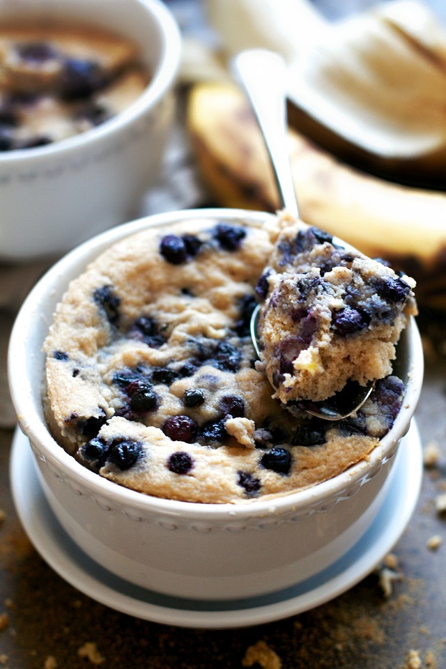 Σε μια μεγάλη κούπα του καφέ προσθέστε το αλεύρι καρύδας, το baking powder και την κανέλα. Ανακατεύετε πολύ καλά. Στη συνέχεια, στην ίδια κούπα βάζετε το γάλα, την μπανάνα αφού πρώτα την έχετε λιώσει, συνεχίζετε το ανακάτεμα, μέχρι το μείγμα να είναι ομοιόμορφο και χωρίς κόκκους. Σπάστε ένα αυγό και απλώστε τον κρόκο με το πιρούνι μέχρι να πάει παντού. Έπειτα, προσθέστε τα βατόμουρα. Ψήνετε σε υψηλή θερμοκρασία στον φούρνο μικροκυμάτων για 3 λεπτά. Αφαιρείτε και σερβίρετε.