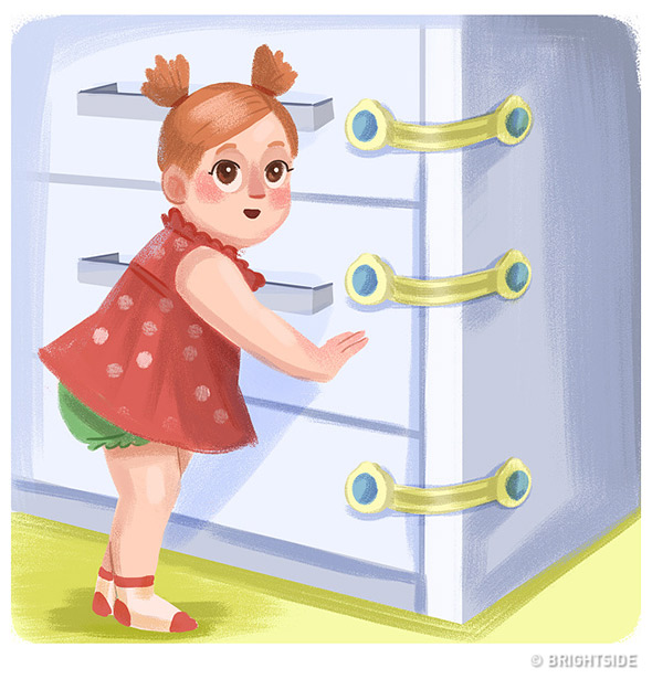 Ένα από τα ανεξήγητα ενδιαφέροντα των παιδιών είναι να ανοίγουν τα συρτάρια, να προσπαθούν να σκαρφαλώσουν ή ακόμη και να τρυπώσουν σε αυτά. Ο κίνδυνος λοιπόν να σκοντάψουν και να χτυπήσουν είναι εξαιρετικά μεγάλος. Για να αποφύγετε αυτό το ενδεχόμενο, προμηθευτείτε προστατευτικά ασφαλείας και κλειδαριές, για να έχετε μια έγνοια λιγότερη.