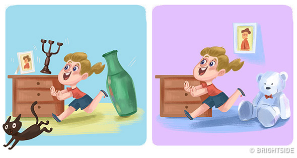 Όσο τα παιδιά είναι μικρά, καλό θα ήταν να αποφύγετε τα βαριά διακοσμητικά, όπως είναι τα βάζα, τα κηροπήγια, ακόμη και τα κάδρα. Με το που αρχίσουν να περπατούν, σε χρόνο ντετέ θα ξεκινήσουν και να τρέχουν με αυτόν τον χαριτωμένο, αλλά και ατσούμπαλο τρόπο. Δεν είναι απίθανο να σκοντάψουν σ' ένα έπιπλο και το βάζο να προσγειωθεί στο κεφαλάκι τους. Κρύψτε τα επικίνδυνα αντικείμενα και οπωσδήποτε βάλτε προστατευτικά στις γωνίες για να μην βρεθείτε στο νοσοκομείο… για ράμματα.