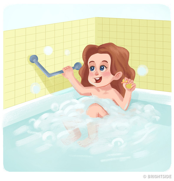 Είναι αυτονόητο ότι εσείς θα κάνετε μπάνιο το παιδί, οπότε ο κίνδυνος για ατυχήματα είναι περιορισμένος, ωστόσο επειδή η «κακιά η ώρα» πάντα καραδοκεί, καλό είναι να λάβετε τα μέτρα σας. Αρχικά, βάλτε ένα ειδικό αντιολισθητικό χαλάκι στον πάτο της μπανιέρας για να μην γλιστρήσει σε περίπτωση που σηκωθεί ξαφνικά. Στη συνέχεια, τοποθετήστε τα αφρόλουτρα και τα σαμπουάν κάπου που δεν έχει πρόσβαση το παιδί, έτσι ώστε να μην κάνει μια απότομη κίνηση και πέσει τίποτα στο κεφάλι του. Τέλος, όταν τελειώνετε, στεγνώνετε πάντα τα χέρια σας έτσι ώστε να αποφευχθεί ο κίνδυνος να σας γλιστρήσει και να σας «φύγει μέσα από τα χέρια».