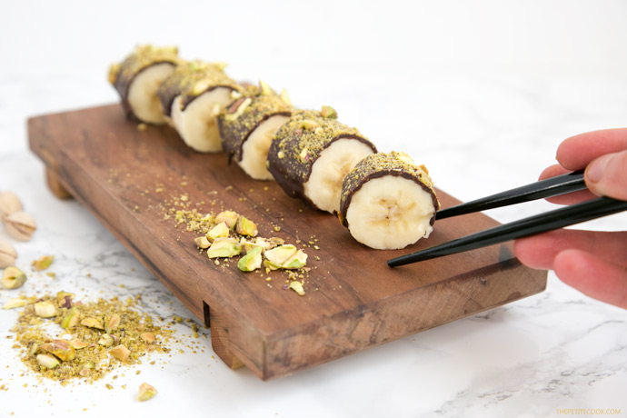 Κόψτε μία μπανάνα σε ροδέλες, βουτήξτε την σε λιωμένη κουβερτούρα, αφήστε να κρυώσει και σερβίρετε με τσοπ στικς!