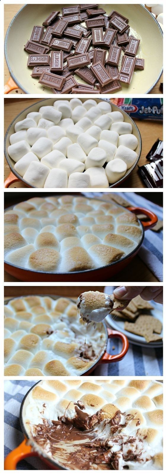 Πάρτε την αγαπημένη τους σοκολάτα, απλώστε την σε ένα πυρέξ και από πάνω τοποθετήστε μπουκίτσες marshmallow. Αφήστε τα στο φούρνο μέχρι να ροδίσουν οι καραμέλες και σερβίρετε!