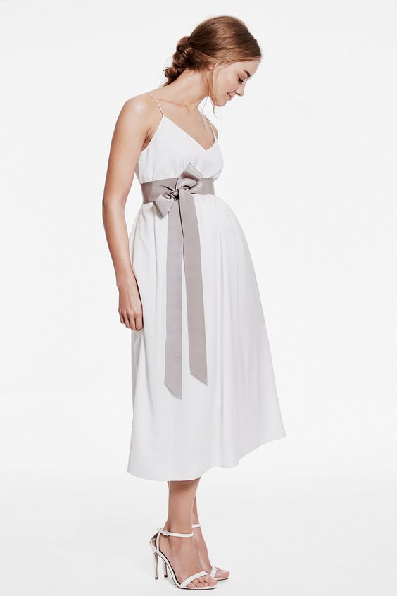 Μπορεί και να το μπερδεύαμε με φόρεμα. Ωστόσο είναι νυφικό που κερδίζει τις εντυπώσεις χάρη στην περασμένη γύρω απ' τη μέση κορδέλα. Θυμίζει λιγάκι δώρο και η φουσκωτή κοιλίτσα το επιβεβαιώνει!