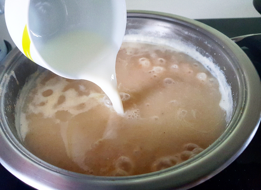 Βράζετε τον τραχανά σε 1,5 λίτρο νερό με λίγο αλάτι σε σιγανή προς μέτρια φωτιά ανακατεύοντας συχνά. Μόλις χυλώσει το μίγμα, προσθέτετε το γάλα και το αφήνετε να βράσει ακόμα 5 λεπτά.