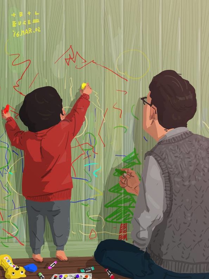 Όταν ο μπαμπάς σου είναι σκιτσογράφος, η ζωγραφική στον τοίχο μάλλον... επιτρέπεται.