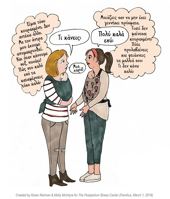Δεν είσαι μόνη σου! Όλες οι μαμάδες δυσκολεύονται στην αρχή. Ακόμη κι εκείνη η «τέλεια» γειτόνισσα που φαίνεται ότι τα προλαβαίνει όλα. Μην συγκρίνεις τον εαυτό σου με άλλες μαμάδες, γιατί δεν ξέρεις ποτέ τι συμβαίνει πίσω από την κλειστή πόρτα ενός σπιτιού.
