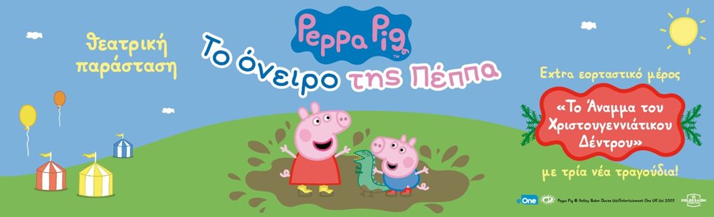 Η Πέππα το Γουρουνάκι, ο μπαμπάς Γουρουνάκης, η μαμά Γουρουνίτσα, ο Τζορτζ, η Μαντάμ Γαζέλα, η Σούζυ Προβατίνα και η Ρεβέκκα Κουνέλη σας περιμένουν να ζήσετε μαζί τους το «Όνειρο της Πέππα», ένα σύγχρονο παραμύθι με τους αγαπημένους ήρωες των παιδιών.