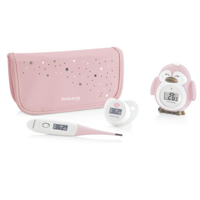 Περιλαμβάνει 3 θερμόμετρα: ένα σε μορφή πιπίλας για τους πρώτους μήνες του παιδιού για να μην διαμαρτύρεται αν προσπαθήσετε να μετρήσετε τη θερμοκρασία του, ένα για τη θερμοκρασία του νερού στο μπάνιο και ένα κλασικό ευλύγιστο θερμόμετρο για όταν μεγαλώσει λίγο το μωράκι σας.