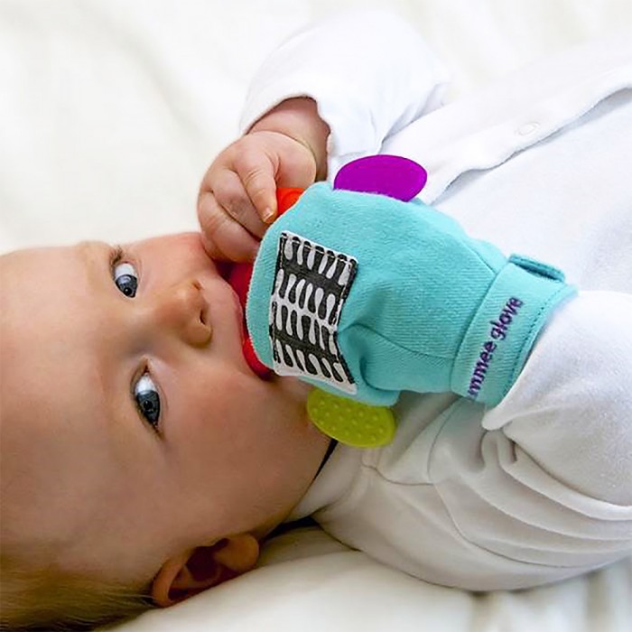 Για να μην του πέφτουν συνέχεια τα μασητικά μέσα από τα χέρια του, η σίγουρη λύση είναι να τα φοράει! Το μασητικό γάντι δεν χάνεται και το μωρό ανακουφίζεται από τους πόνους της οδοντοφυΐας.