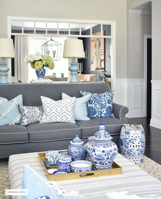 Βάλτε τα κλασικά παλιά βάζα αξίας που συνήθως έχουν τη μπλε- άσπρη αντίθεση σε κοινή θέα για να κλέψουν τις εντυπώσεις.