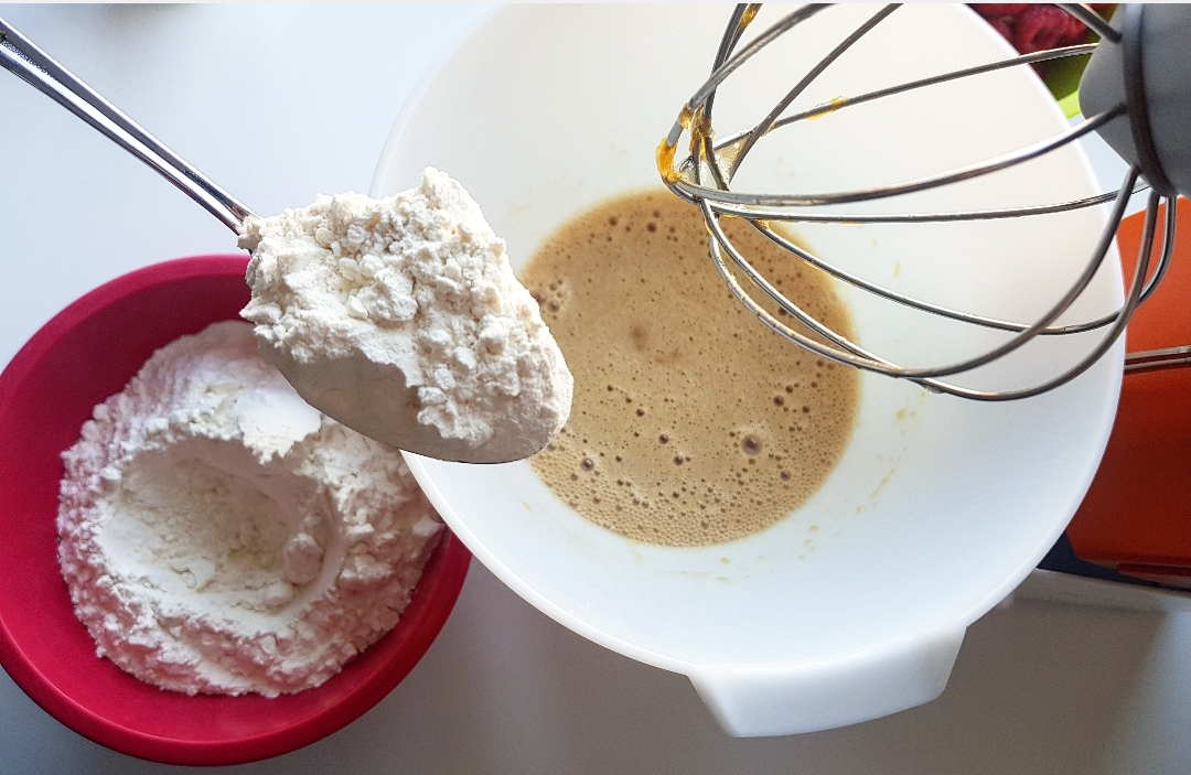 Στη συνέχεια προσθέτετε τα αυγά ένα- ένα ανακατεύοντας καλά (ιδανικά με μίξερ χειρός ή ένα μεγάλο μίξερ πάγκου).