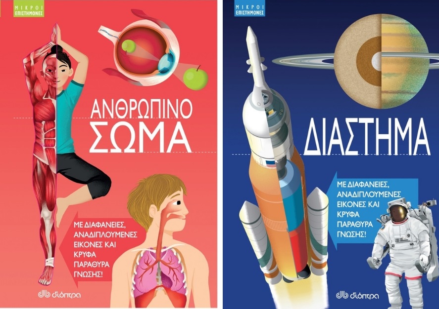 Η σειρά Μικροί Επιστήμονες απευθύνεται σε μεγαλύτερα παιδιά και παρουσιάζει το Ανθρώπινο Σώμα και το Διάστημα μέσα από διαφάνειες, παράθυρα γνώσης και αναδιπλούμενες εικόνες.