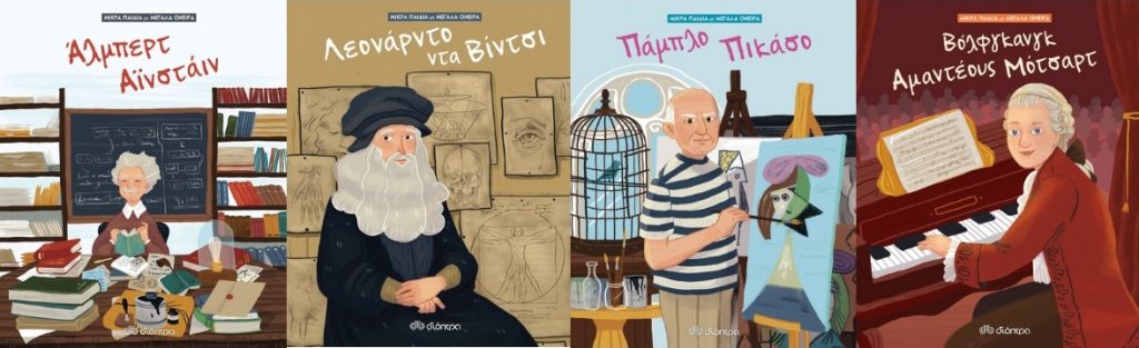 Τα Μικρά Παιδιά με Μεγάλα Όνειρα είναι μικρές βιογραφίες για παιδιά σχολικής ηλικίας. Αναφέρονται σε σπουδαίες προσωπικότητες που άφησαν το αποτύπωμά τους στην ιστορία της ανθρωπότητας και συνεχίζουν να εμπνέουν μικρούς και μεγάλους. Οι τέσσερις πρώτοι τίτλοι Αϊνστάιν, Ντα Βίντσι, Πικάσο, Μότσαρτ, περιλαμβάνουν χρονολόγιο και ερωτήσεις κατανόησης και, παράλληλα, παρουσιάζουν το ιστορικό πλαίσιο κάθε εποχής.