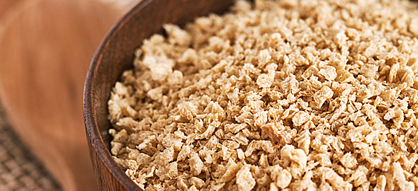 Βάζετε τη σόγια σε ένα μεγάλο μπολ και στη συνέχεια την καλύπτετε με βραστό νερό. Μην βάλετε παραπάνω νερό παρά μόνο όσο αρκεί για να καλυφθεί ο κιμάς.