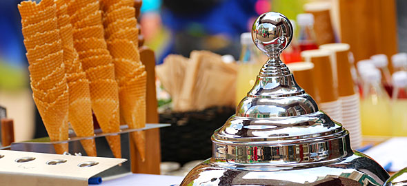 - Εκτός από τις μπομπονιέρες και τα ατομικά γλυκάκια, μπορείτε να έχετε επιπλέον ένα καρότσι παγωτού που αναμφισβήτητα θα κλέψει τις εντυπώσεις. Από μόνο του, μπορεί να ανεβάσει αρκετά το budget της βάφτισης. Και πάλι όμως είναι μια πολύ καλή ιδέα, αν επιλέξετε μόνο γλυκά κεράσματα. Σε περίπτωση που επιλέξετε και φαγητό, μπορείτε να ψάξετε ένα catering που θα συμπεριλαμβάνει το καρότσι παγωτού στο πακέτο που θα έχετε πληρώσει.