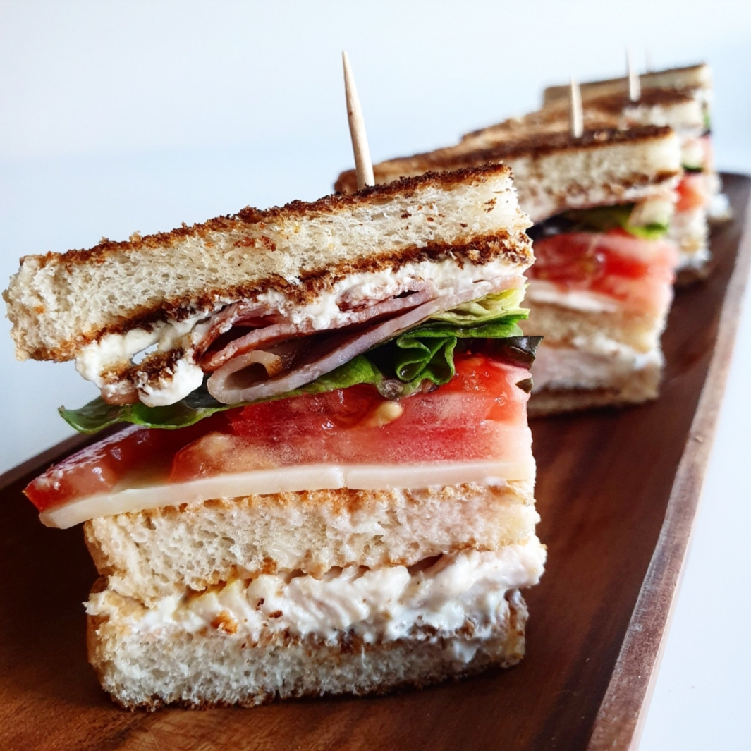 Πάνω στο ίδιο ψωμί βάζετε κι άλλη μαγιονέζα. Αυτήν τη φορά προσθέτετε το κασέρι, το μαρούλι, την ντομάτα και το μπέικον.