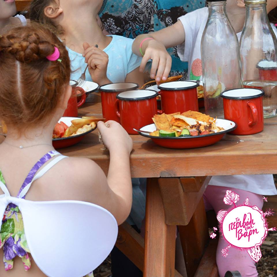 Το Camp του Περιβολιού είναι το μόνο στο οποίο τα παιδιά συμμετέχουν ενεργά στη δημιουργία των γευμάτων τους, με αγνά υλικά κατευθείαν από τα παρτέρια μας και από συνεργασίες με μικρούς ντόπιους παραγωγούς. Συγκομίζουν τη σαλάτα τους, μαζεύουν τα αυγά από τις κότες για το δεκατιανό, ζυμώνουν το ψωμί τους, ή φουρνίζουν ένα υπέροχο μπριάμ.